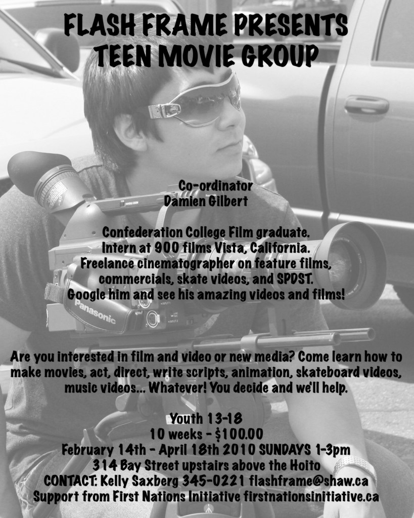 In 2010, Thunder Bay filmmaker Damien Gilbert led two groups of teens through a multi-week, hands on filmmaking workshop. These workshops were presented in the Spring and Fall of 2010, and completed films were presented at the Bay Street Film Festival.